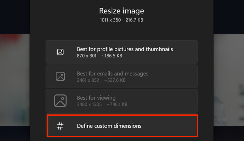 - Right click the image and click resize.