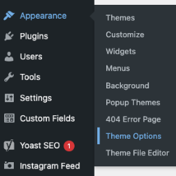 The options page may vary in appearance depending on the website. It's typically located under the "Website Settings" or "Theme Options" section of the left-hand WordPress toolbar.